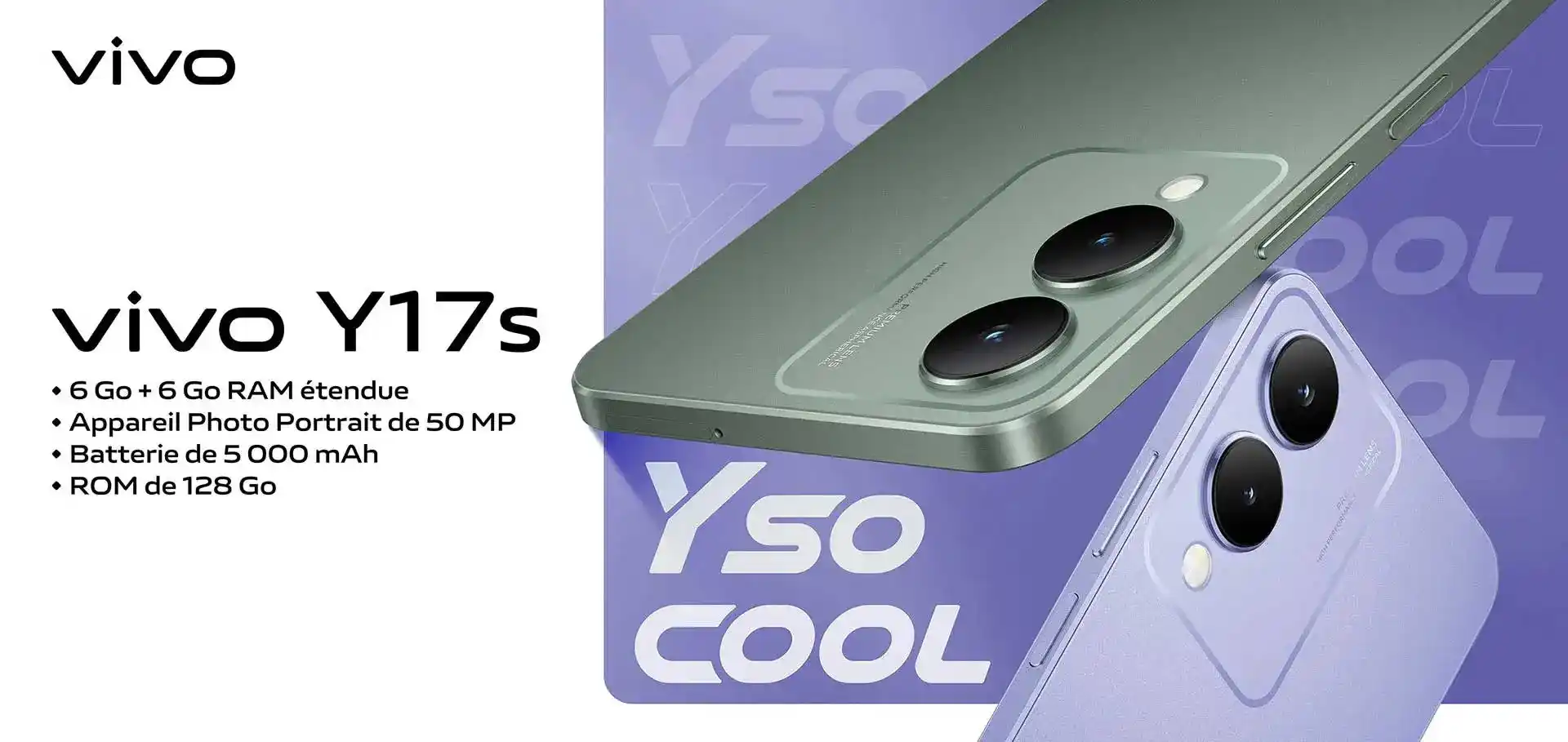 Smartphone Vivo Y17S | 6.56" l 6Go / 128Go | 4G | Violet pailleté
